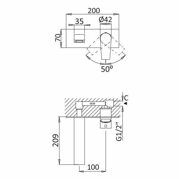 | Длина излива | 209 мм |