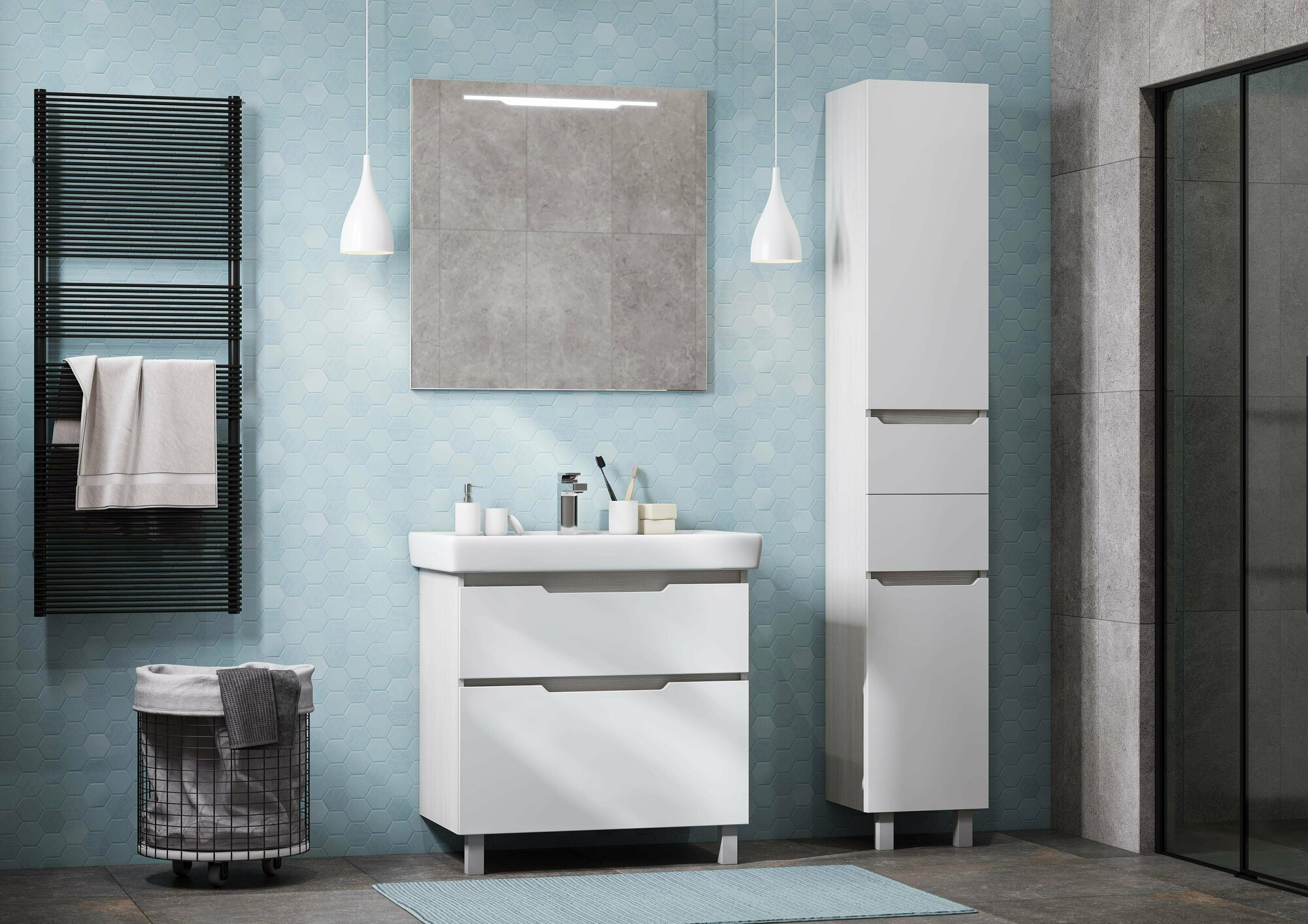 Тумба под раковину AQUATON Дакота 80 (745x455x640) напольная, 2 ящ., белый гл./дерево 1A202901DAAY0