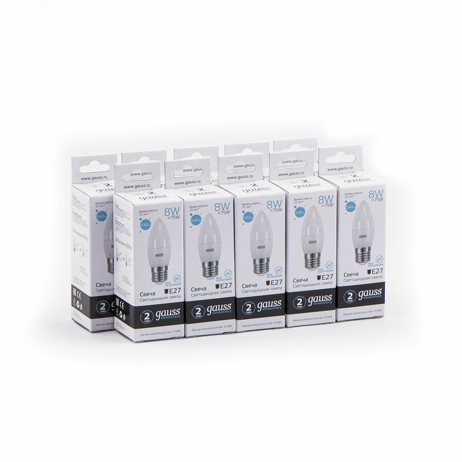 (10 шт)Лампа Gauss Elementary Свеча 8W 540lm 4100K Е27 LED 1/10/100