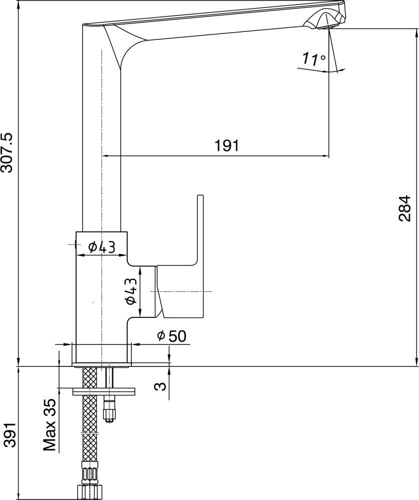 Смеситель для кухонной мойки E.C.A. Nita (102118099EX)
