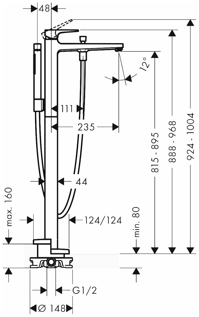 СохранитьHansgrohe 32532140 Metropol Смеситель для ванны, напольный, с рычаговой рукояткой, шлифованная бронза интересное: