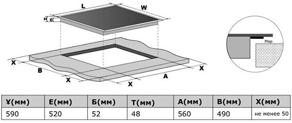| Ширина для встраивания | 56 см |