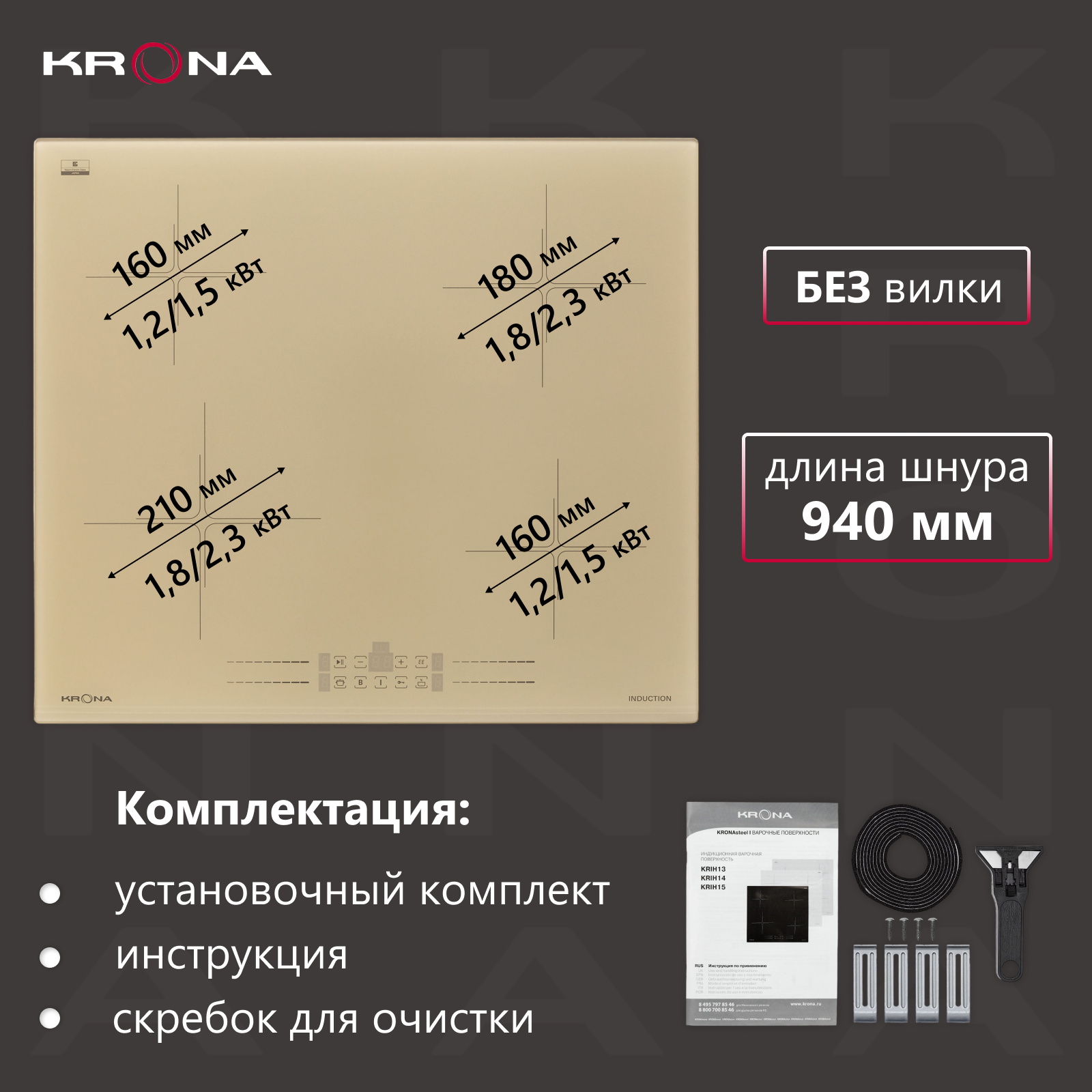 СохранитьИндукционная варочная панель Krona FARBE 60 IV интересное: