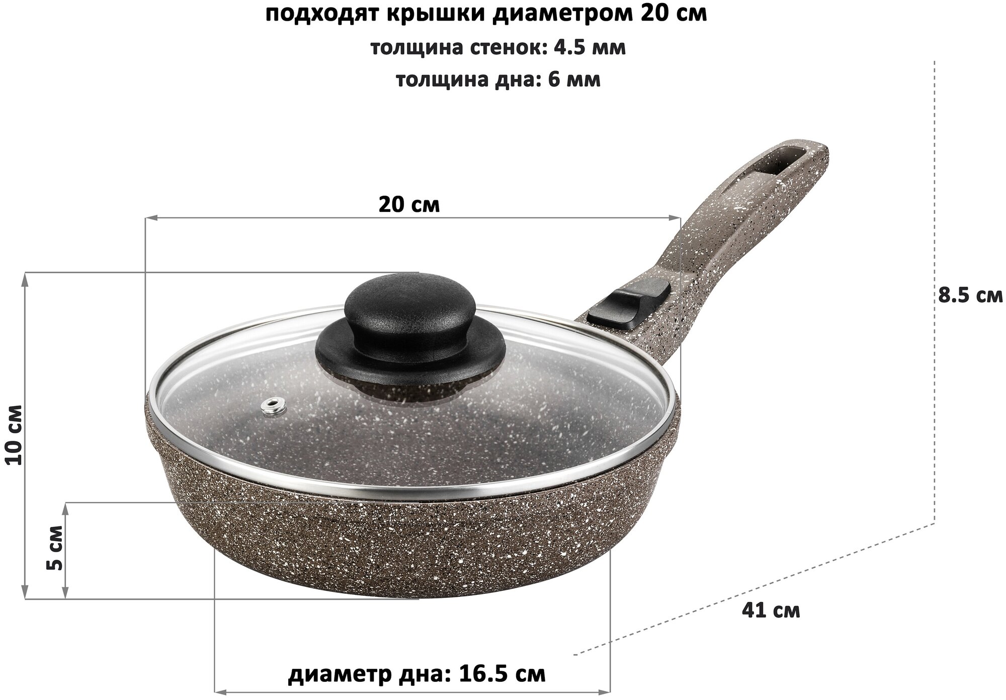 Сковорода глубокая 20 см Elan Gallery Гармония Вкуса Коричневый опал с крышкой D20, съёмная ручка . интересное: