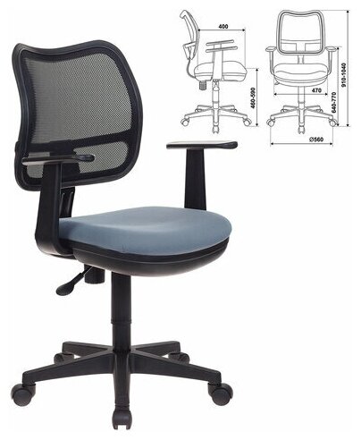 Кресло Бюрократ CH-797axsn/26-25 (спинка черная сетка, сиденье серое 26-25, т-образные подлокотники) .