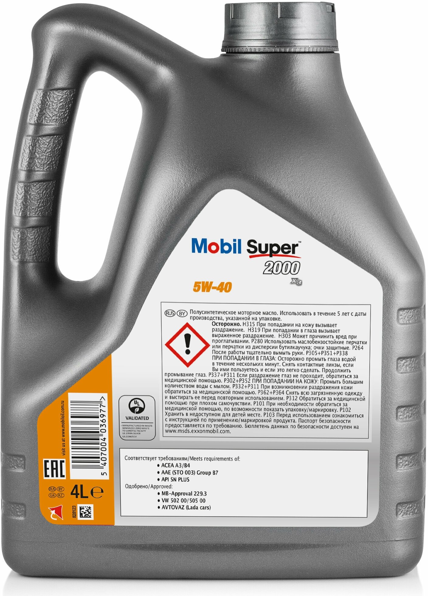 Полусинтетическое моторное масло MOBIL Super 2000 X3 5W-40, 4 л (оригинал, QR-код в РФ НЕ работает!)