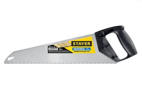 STAYER Ножовка универсальная (пила) "Universal",400мм, 7TPI, закаленный зуб, рез вдоль и поперек волокон, д