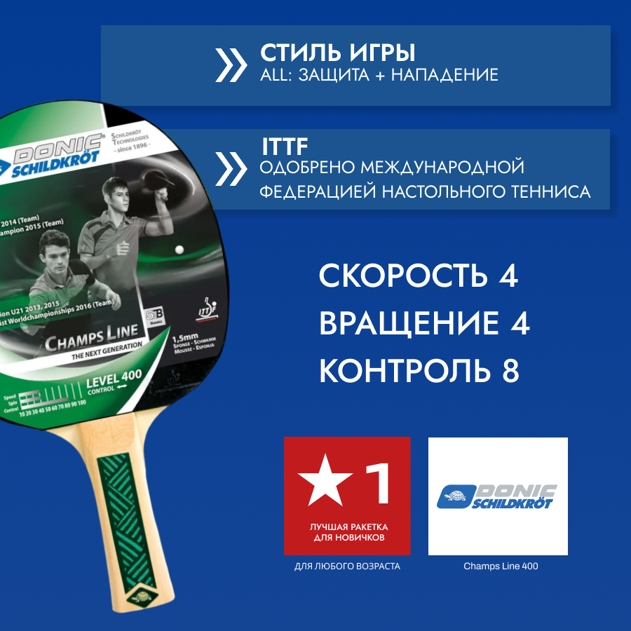 Ракетка для настольного тенниса Donic Schildkrot Champs Line 400 интересное:
