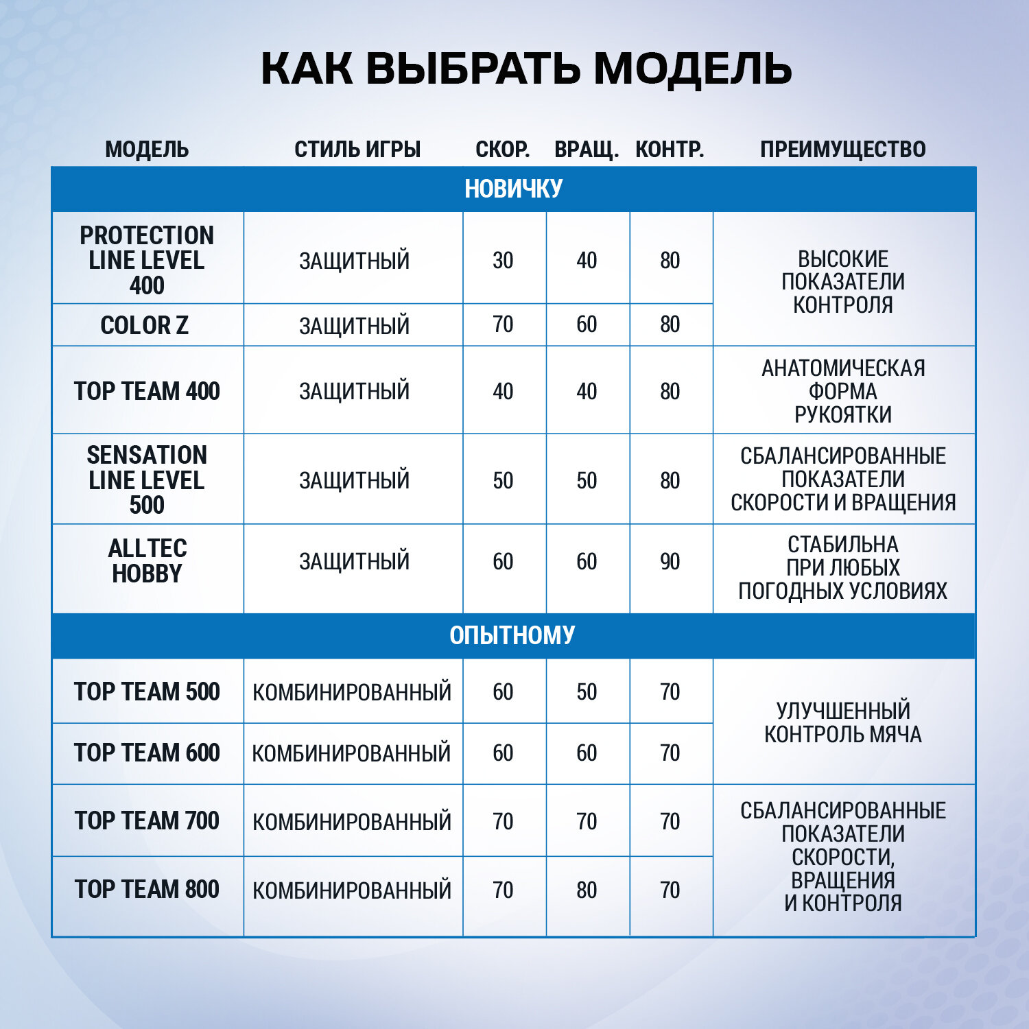 | Скорость, вращение, контроль | скорость - 85; вращение - 86; контроль - 72 |