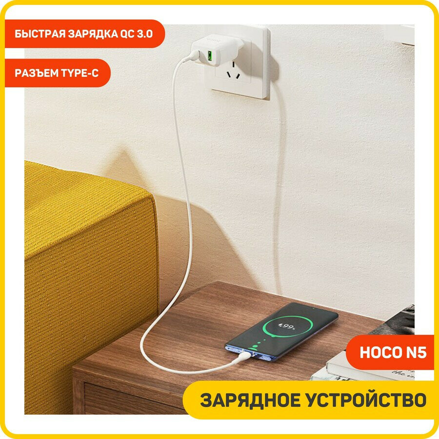 Купить СЗУ, 1 USB 3.0 QC+1 PD 20W (N5), HOCO, Type-C to Type-C, белый
