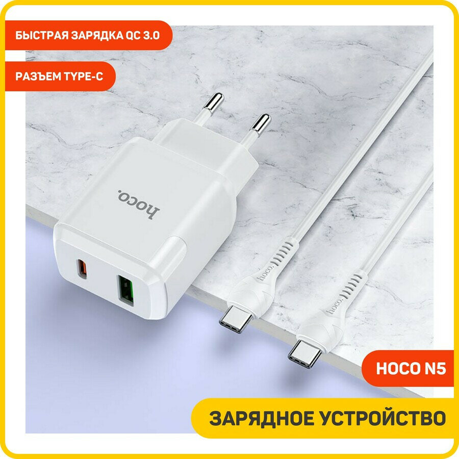 Сетевое зарядное устройство + кабель Type-C to Type-C N5 PD+QC3.0 20W белый Hoco