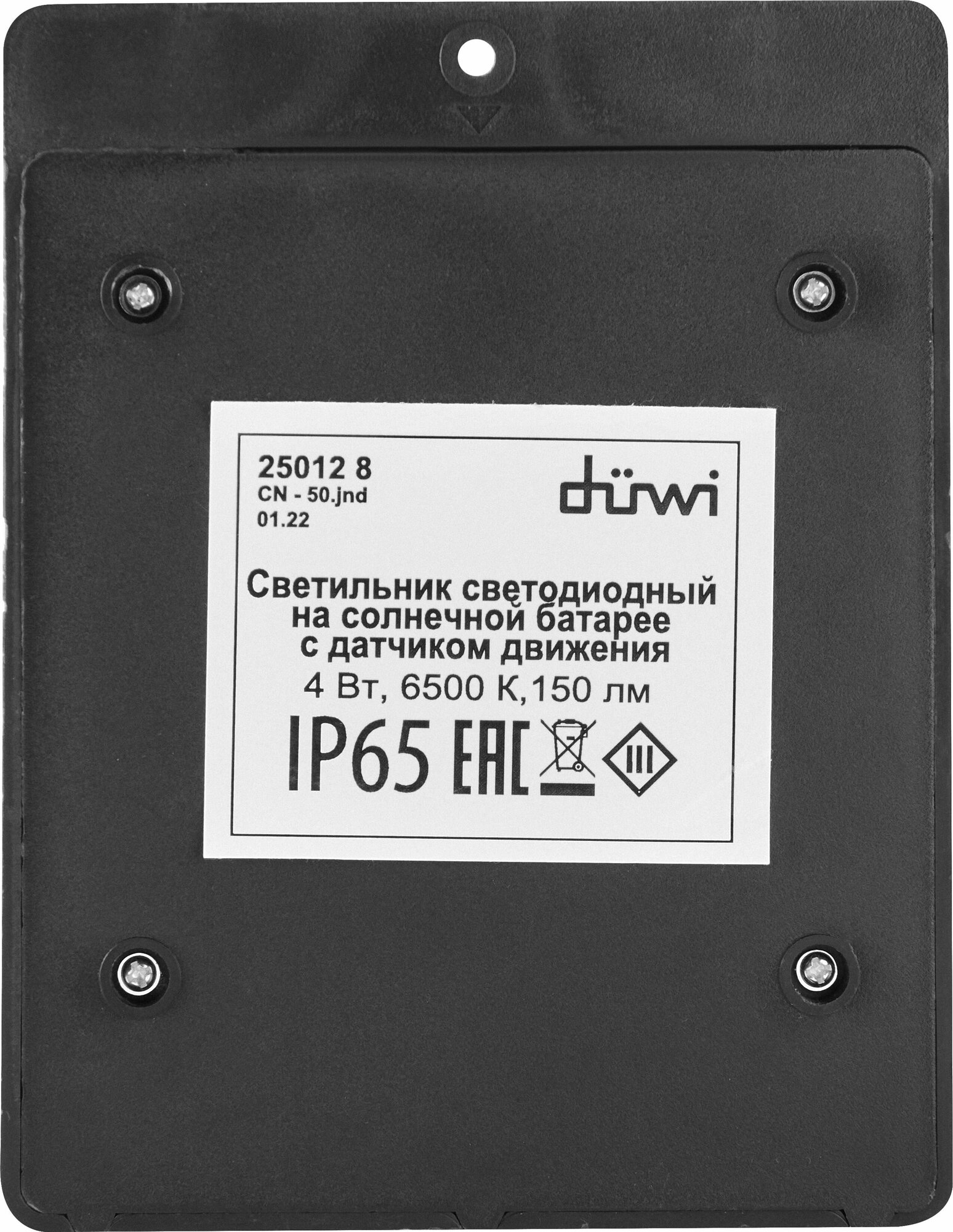 Светодиодный светильник duwi с датчиком движения Solar LED на солнечных батареях, 4Вт, 6500К, 150Лм, IP65, цвет черный 25012 8