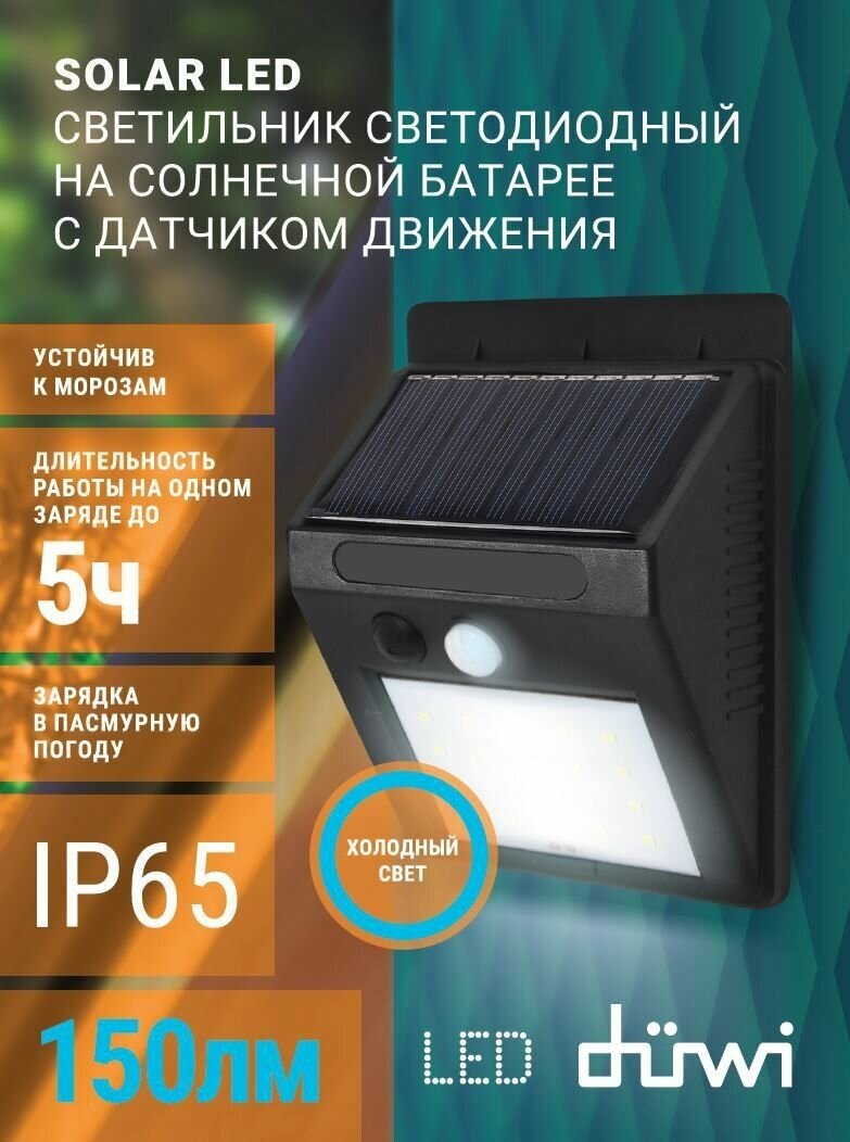 Светильник светодиодный уличный Duwi Solar LED на солнечных батареях 4Вт 6500К 150Лм IP65 датчик движения черный интересное: