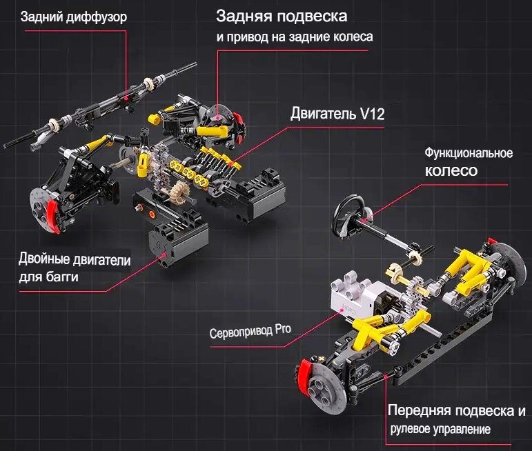 СохранитьКонструктор 3D CaDA радиоуправляемый спорткар V12 Hypercar, 4449 деталей интересное: