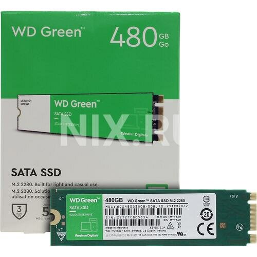 SSD диск WESTERN DIGITAL WD Green M.2 480 Гб SATA III SLC (WDS480G3G0B)