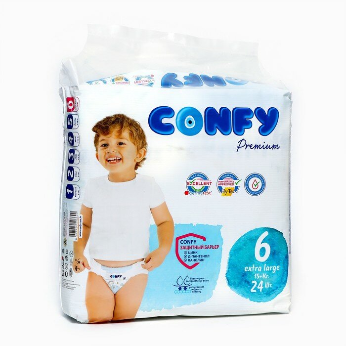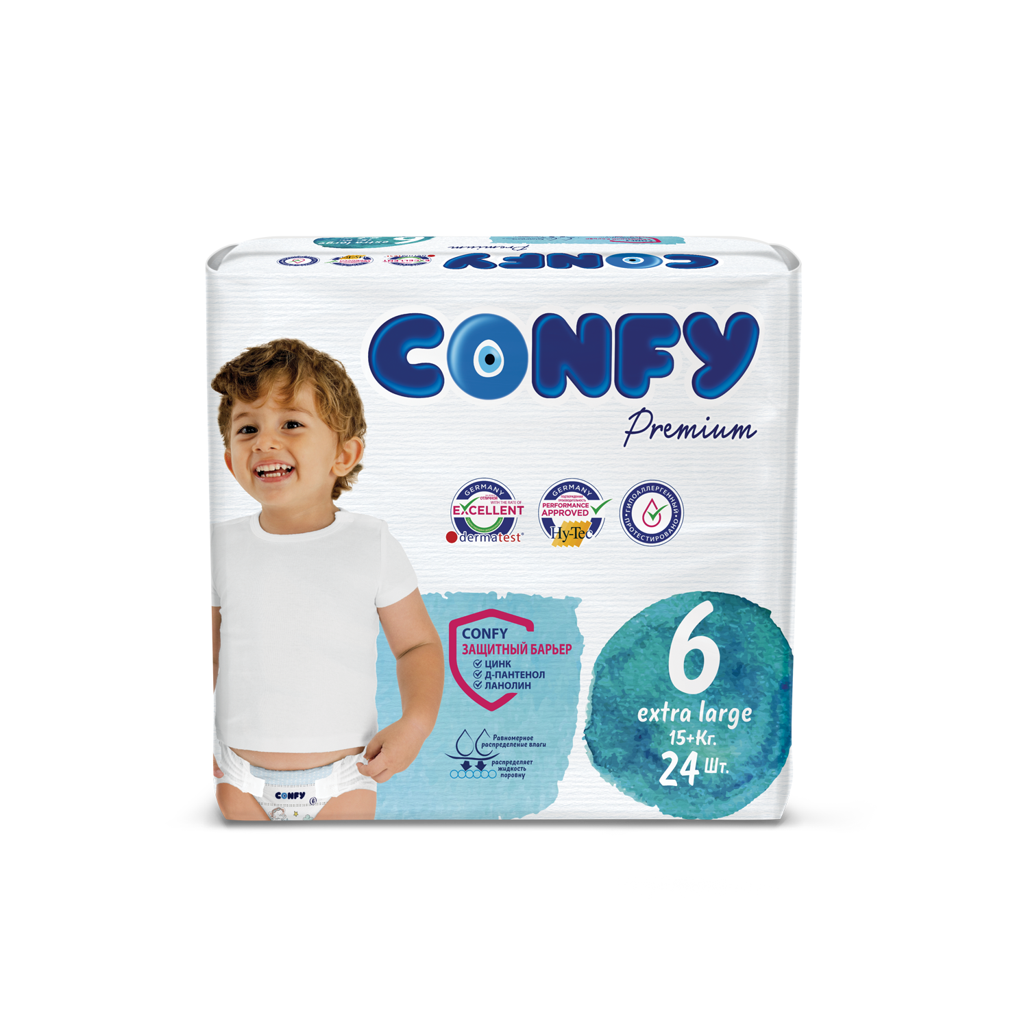 Подгузники Confy Premium Extra Large детские для мальчиков и девочек, 6 размер 15+ кг, 24 шт