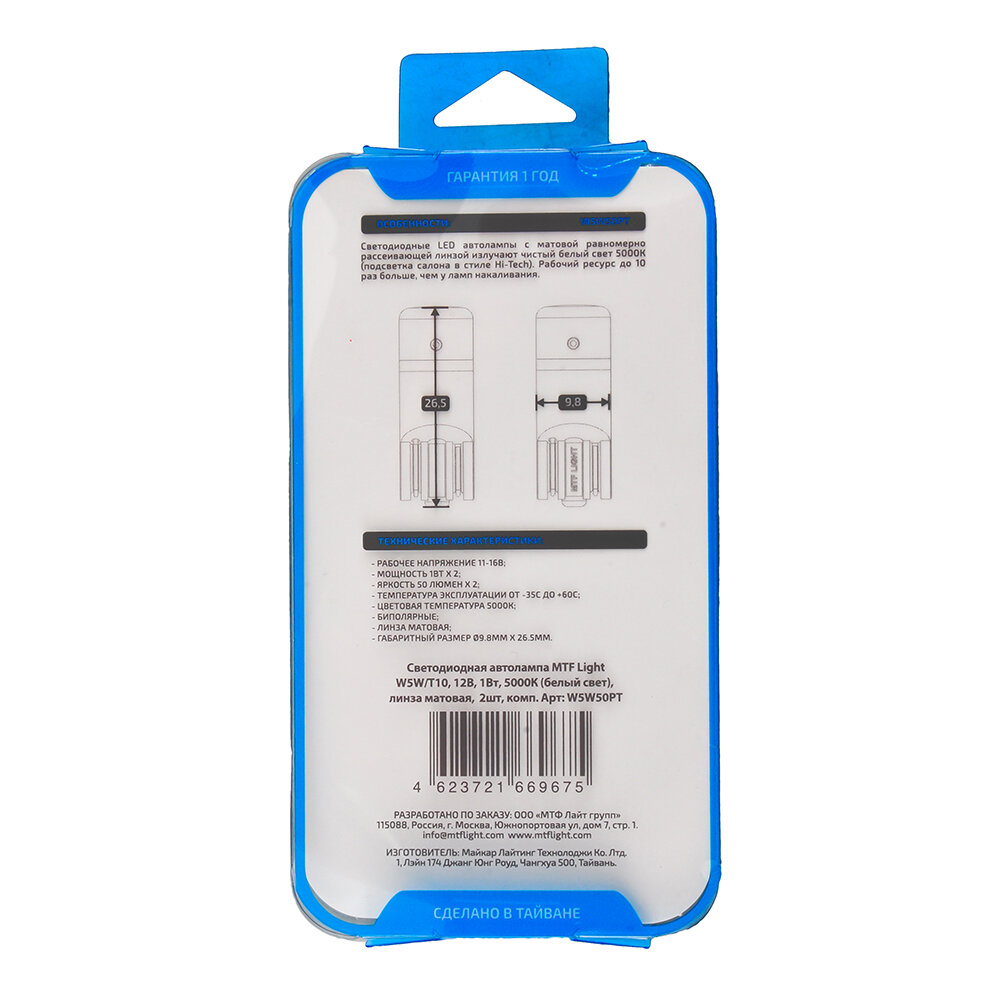 Купить Лампы светодиодные MTFLIGHT 12V W5W/T10 1W 2 шт W5W50PT
