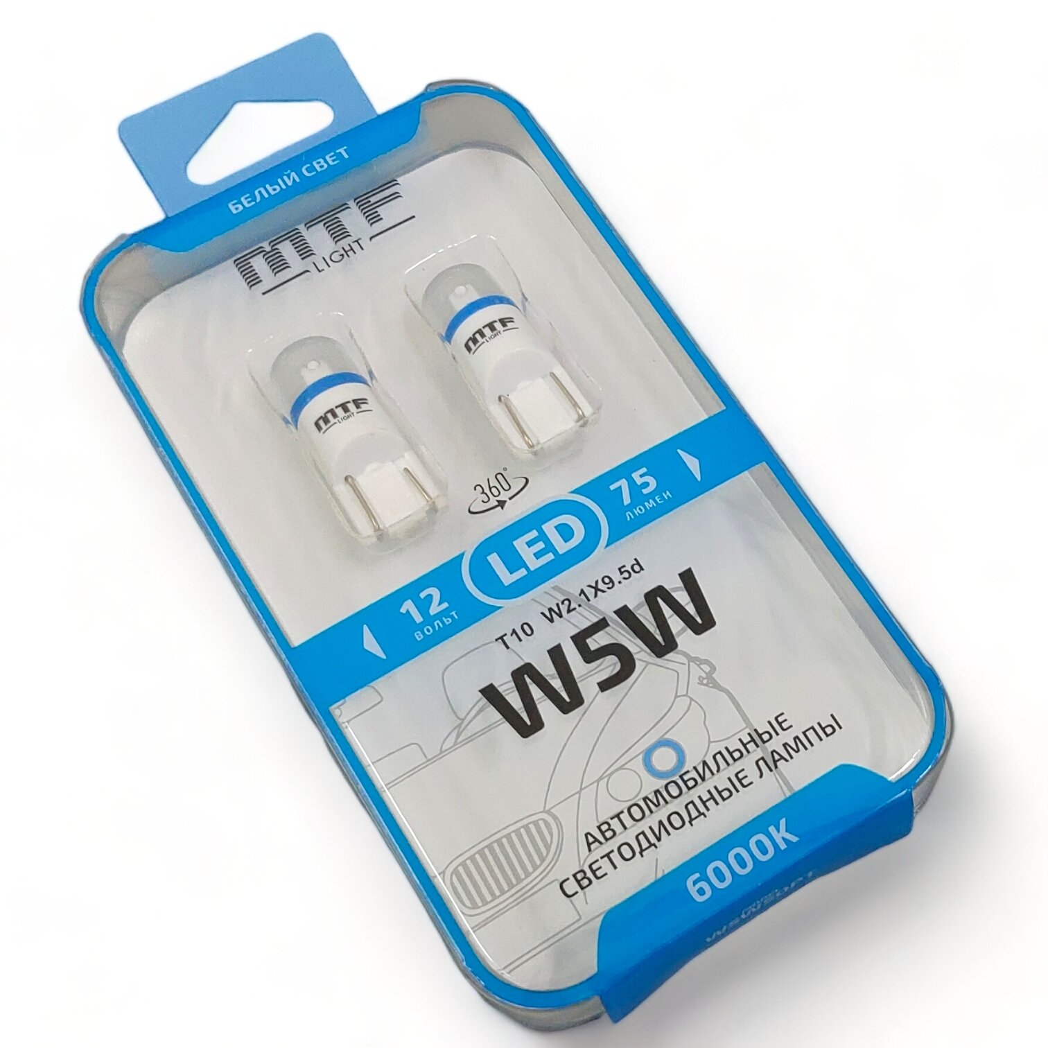 Светодиодная лампа MTF Light W5W/T10 12V 1W 5000K, белый свет, линза матовая, 2шт W5W50PT