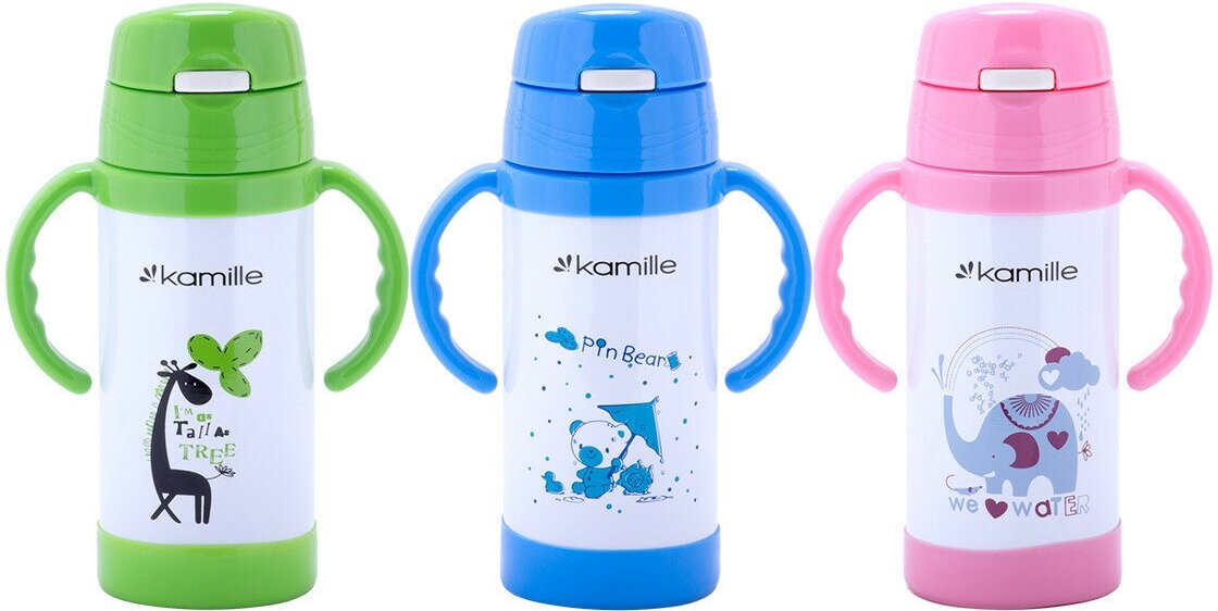 Термос для детей 350 мл. с трубочкой и ручками Kamille KM-2085 розовый, синий, зелёный