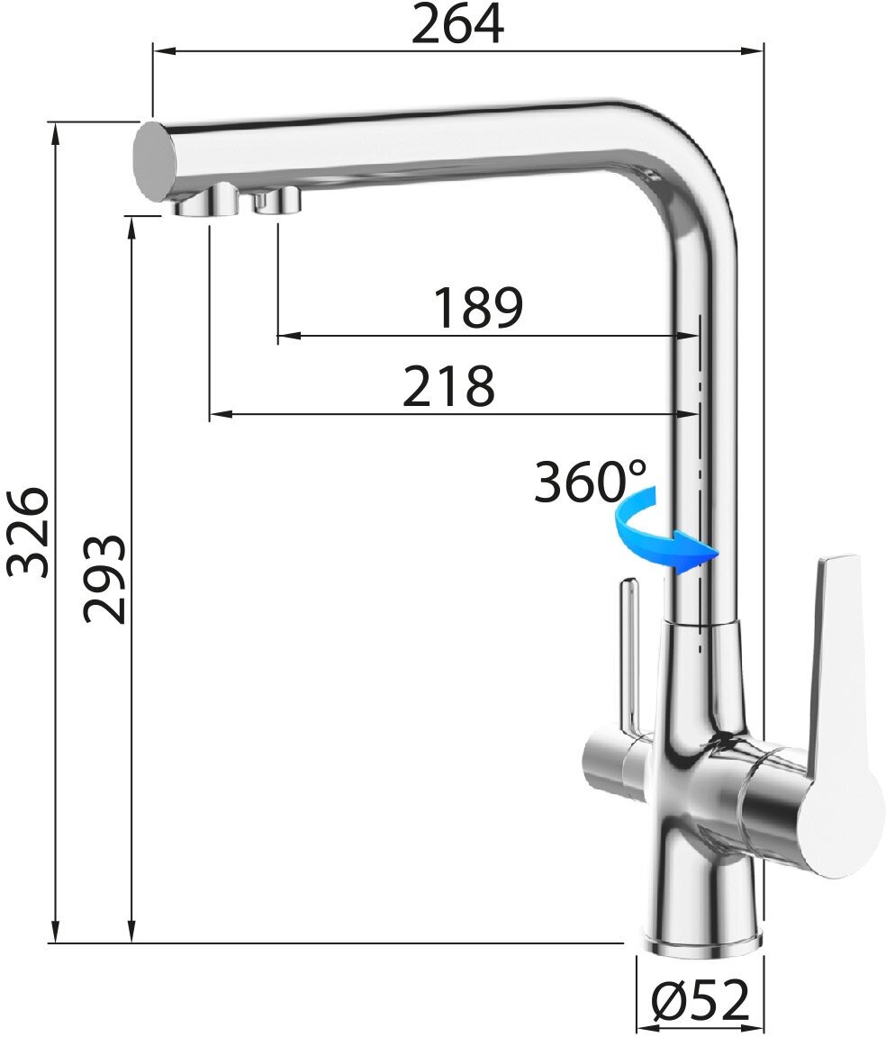 Cмеситель для кухни (для кухонной мойки) для фильтра питьевой воды и с поворотным изливом ELGHANSA 56A5404 хром, латунь