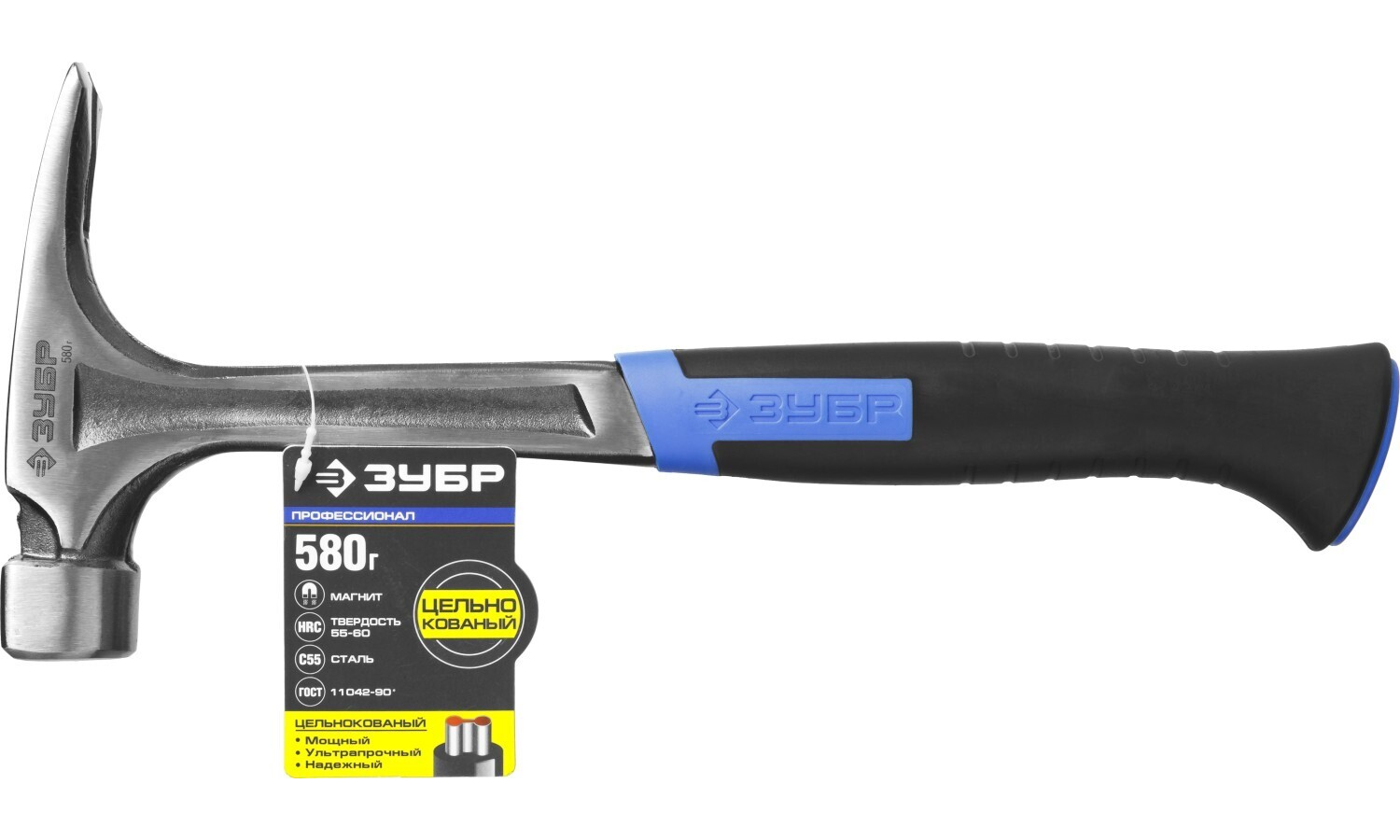Молоток-гвоздодер Зубр "Профессионал" 20258-580 цельнокованый с магнитом и двухкомпонентной рукояткой, 580г