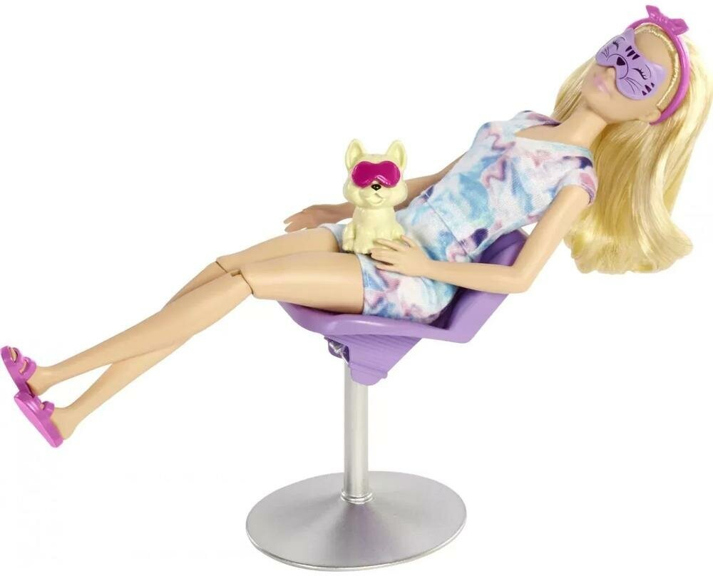 Barbie. Игровой набор Barbie Self-Care "Спа-салон: Кукла Барби с высотой 29 см, маски для лица куклы, питомец и аксессуары" / HCM82