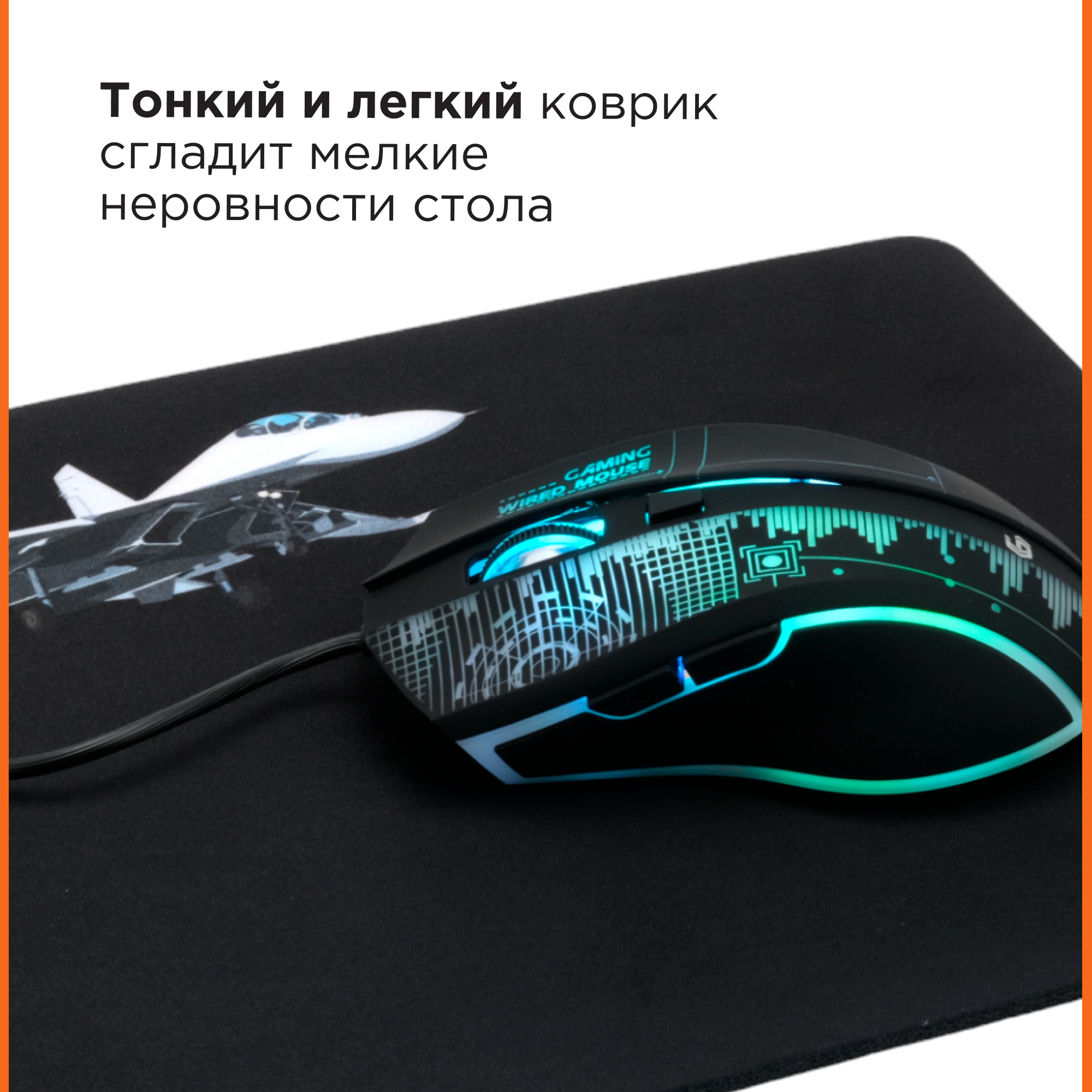 | Плюсы: | Простота и цепкость основания коврика. Мышь хорошо передвигается. Приятный на ощупь материал. Тем более на нем нанесен рисунок истребителя. Что очень радует меня, любителя авиации. ))) |