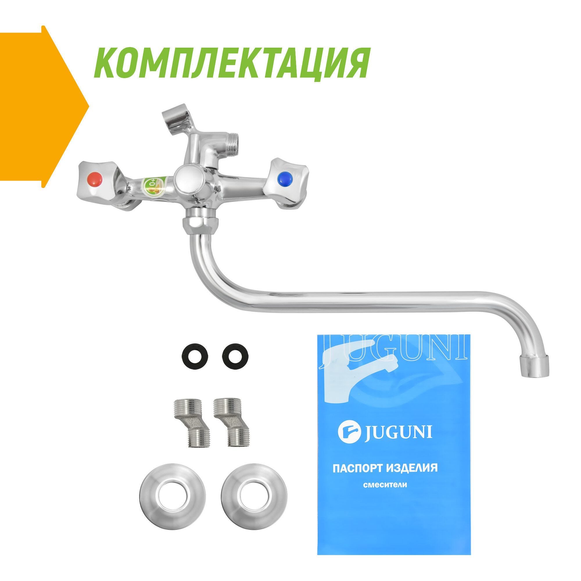 Купить Juguni Смеситель для ванныс держателем для душа и дивертором, для раковины, длина излива 285 мм кран букса-керамическая. В комплекте эксцентрики, отражатели, без лейки и шланга, Арт.: 0402.687