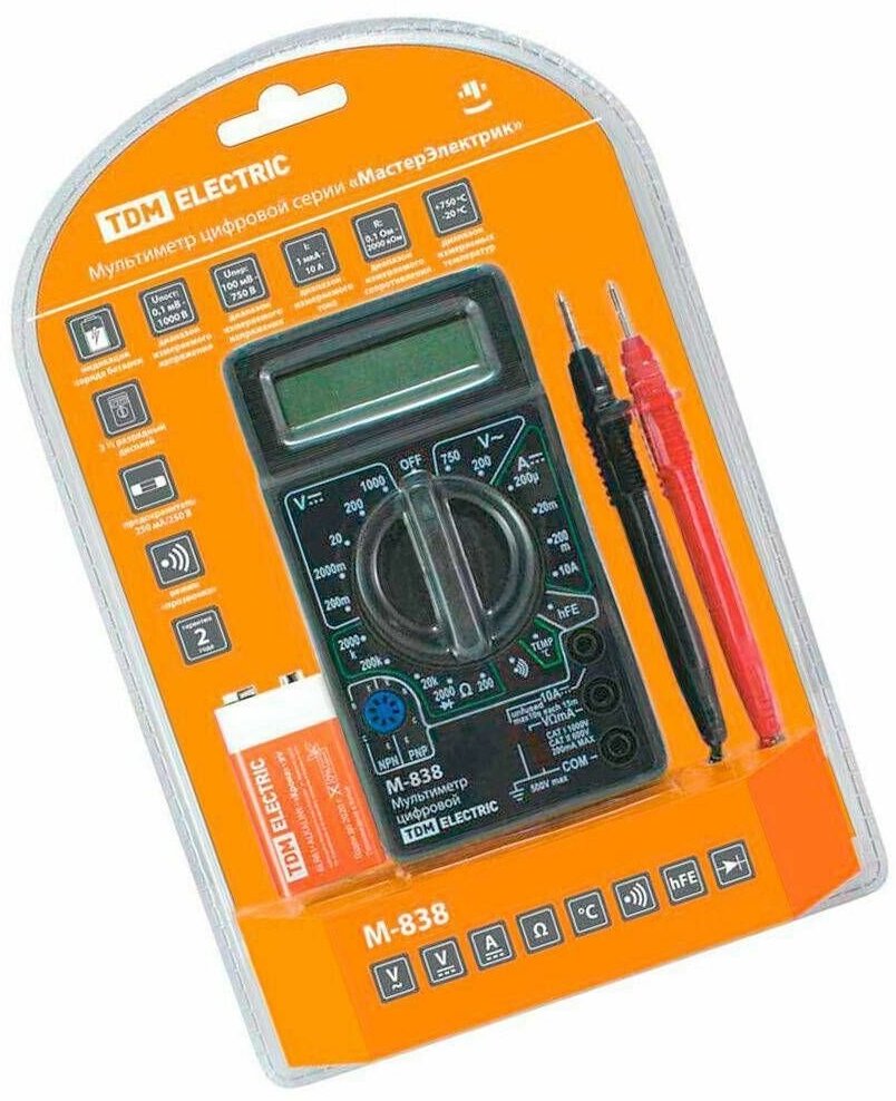 Мультиметр цифровой TDM Electric, МастерЭлектрик М-838, из негорючего пластика, 1 шт