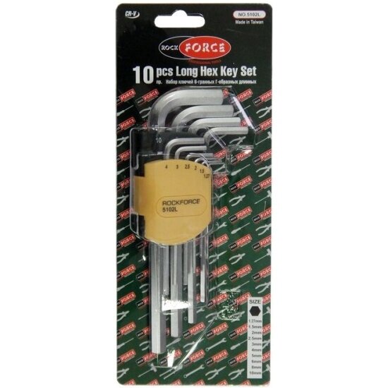 Набор ключей Г-образных 6-гранных длинных, 10пр.(1.27, 1.5, 2, 2.5, 3-6, 8, 10мм) в пластиковом держателе Rock FORCE RF-5102L