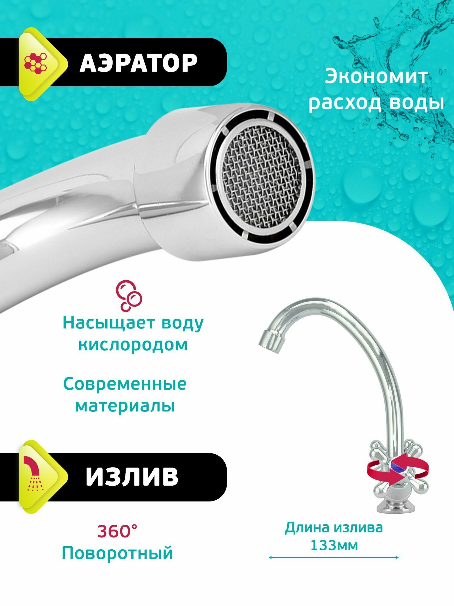 | Особенности | аэратор / поворотный излив |