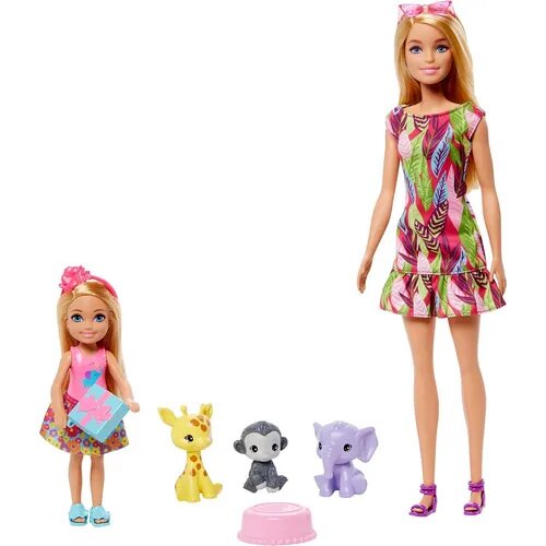 Купить Barbie Игровой Набор кукла Барби и Челси с питомцами жираф, слон и обезьянка