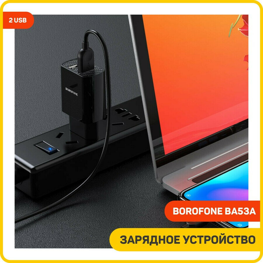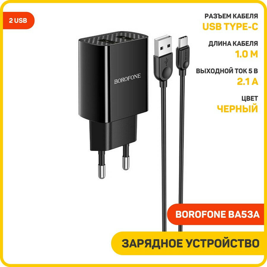 Сетевое ЗУ USB Borofone BA53A + кабель Type-C (2USB/2.1A) черный