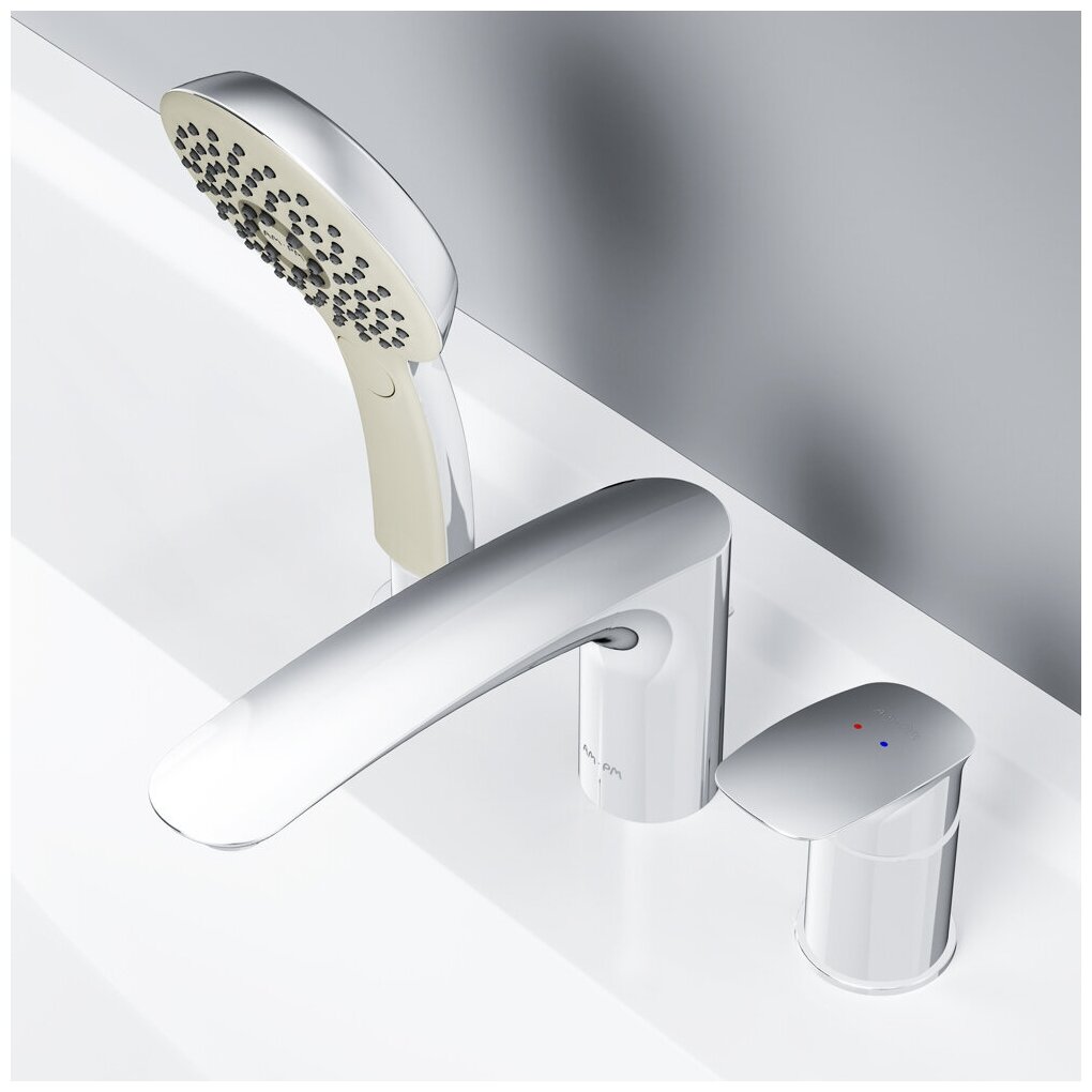 Смеситель на борт ванны AM.PM Inspire V2.0 F50A01300 трехсекционный, лейка с тремя режимами и поверхностью soft touch