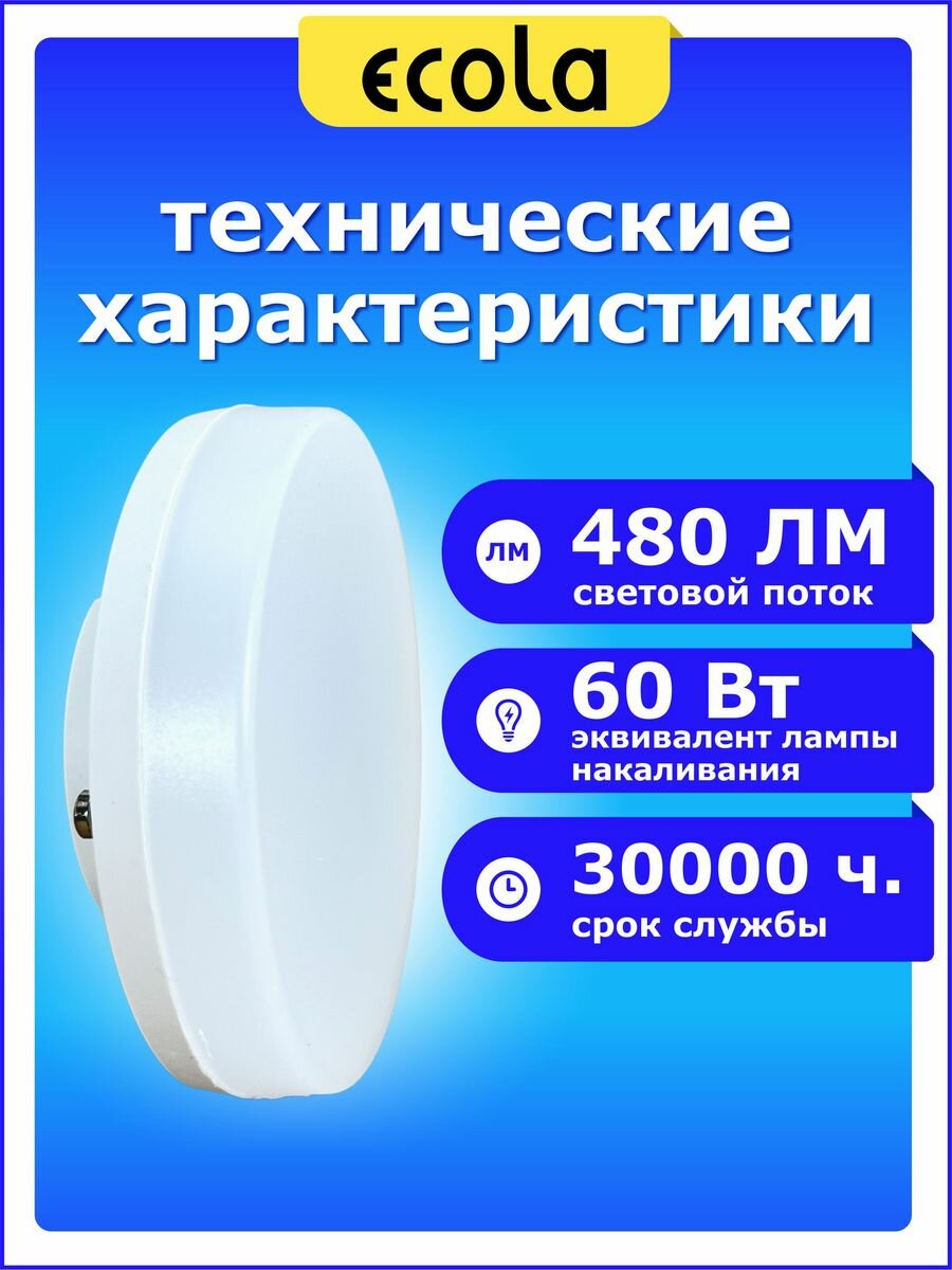 СохранитьЛампочка светодиодная Ecola Light GX53 LED. Мощность 6,0W 6400K Комплект 10 штук. интересное: