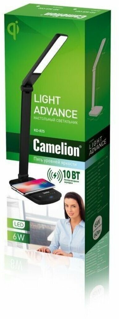 Настольная лампа Camelion LED KD-825 C02 черн. с беспроводн.зарядкой,16 Вт,230В, 380лм,4500К, рег.ярк.)