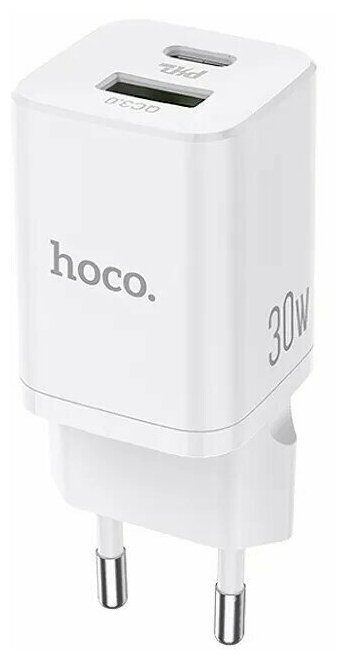 Сетевое зарядное устройство Hoco N13 PD30W+QC3.0 + кабель Type-C - Lightning, белый