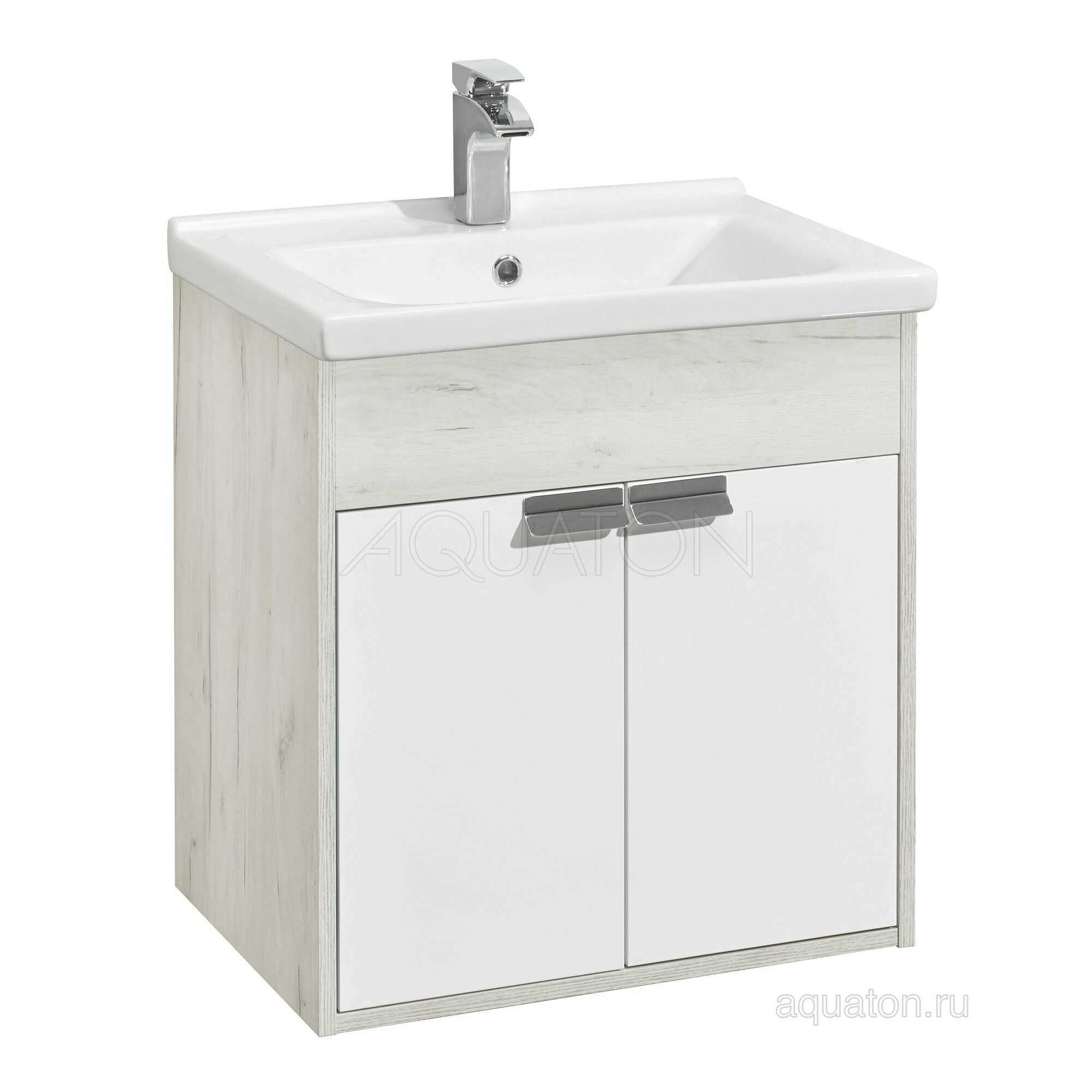 Купить Тумба с раковиной Aquaton Флай 60/Раковина Миранда 60 Белый, Дуб Крафт