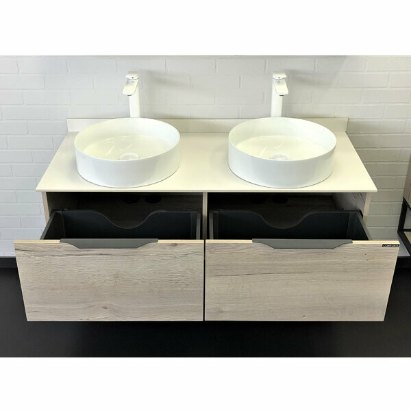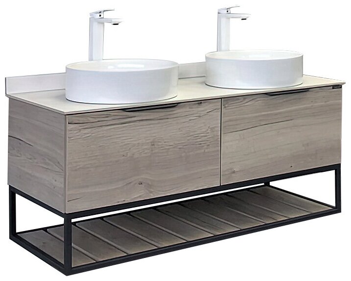 СохранитьТумба с раковинами в ванную 120 COMFORTY (Порто-120-2 дуб дымчатый с белой столешницей + 2 раковины 9110) интересное: