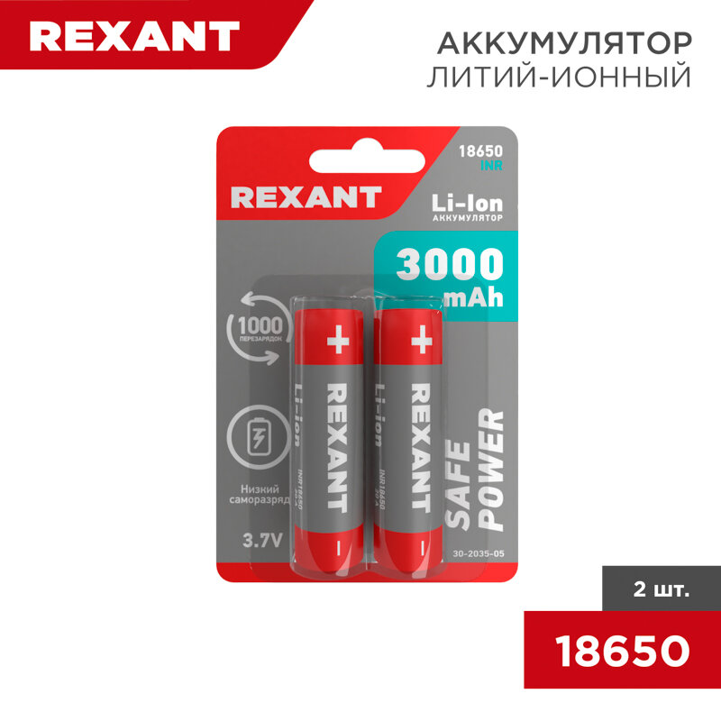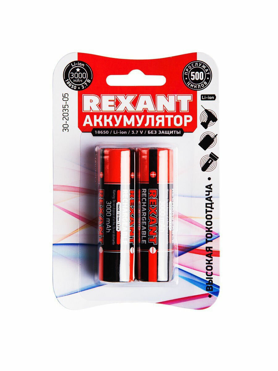 Rexant 18650 20А Li-ion 3000mAH 3.7V без защиты 2шт 30-2035-05
