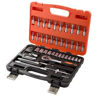 | Ручной инструмент подробно | реверсивная рукоятка (трещотка) ¼ с опцией быстрого сброса 155 мм, храповый механизм с 24 зубьями, рабочий угол 15 градусов - 1шт.; удлинители ¼: 50 и 100 мм - 2шт.; гибкий удлинитель ¼: 150 мм - 1шт.; шарнир универсальный ¼ - 1шт.; рукоятка-битодержатель ¼: 155 мм - 1шт.; Т-образный вороток ¼ - 1шт.; универсальный переходник ¼ - 1шт. |