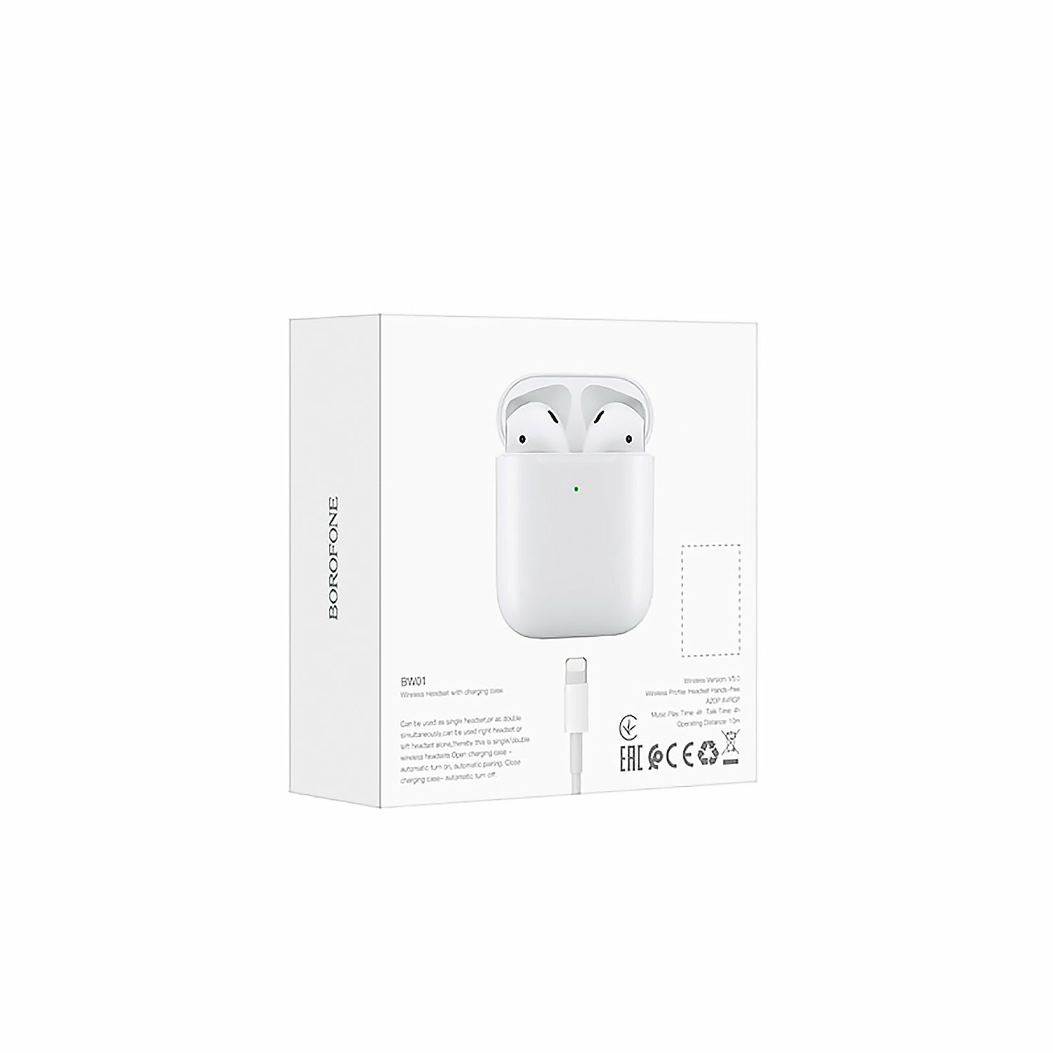 6931474753915 Наушники Headphones BOROFONE BW01 Plus беспроводные с док станцией TWS, BT 5.1, белый