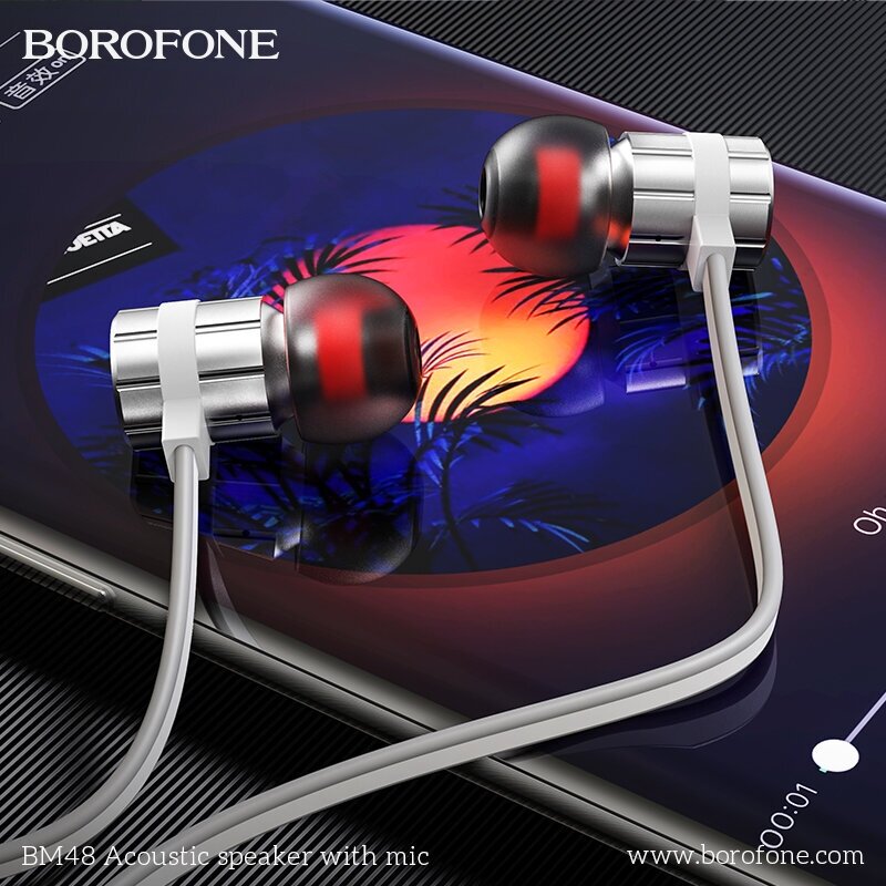 Наушники внутриканальные Borofone BM48, ACOUSTIC, 1.2 м, цвет: серебряный