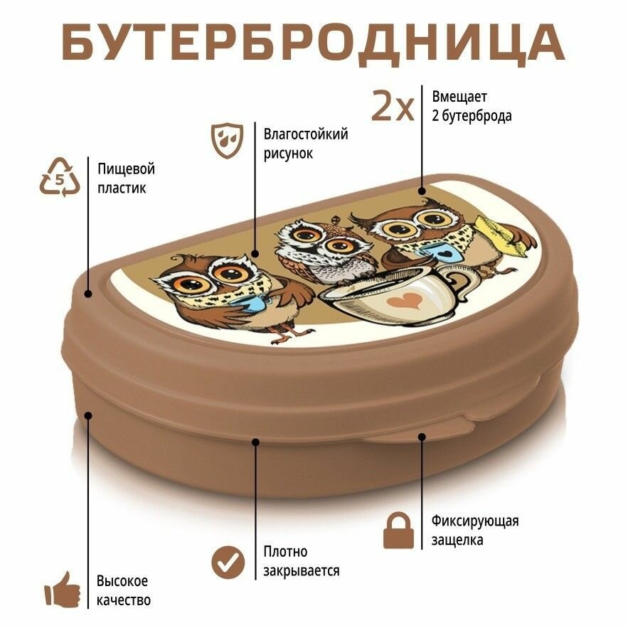 Бутербродница «Совы», 400 мл, цвет коричневый