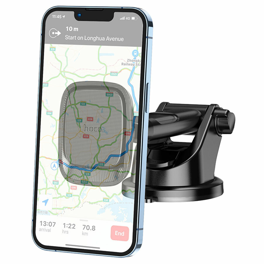 Купить Автомобильный держатель HOCO CA116 Blue Shark, магнитный, на присоске, 4,5-7", чёрный металлик (66)
