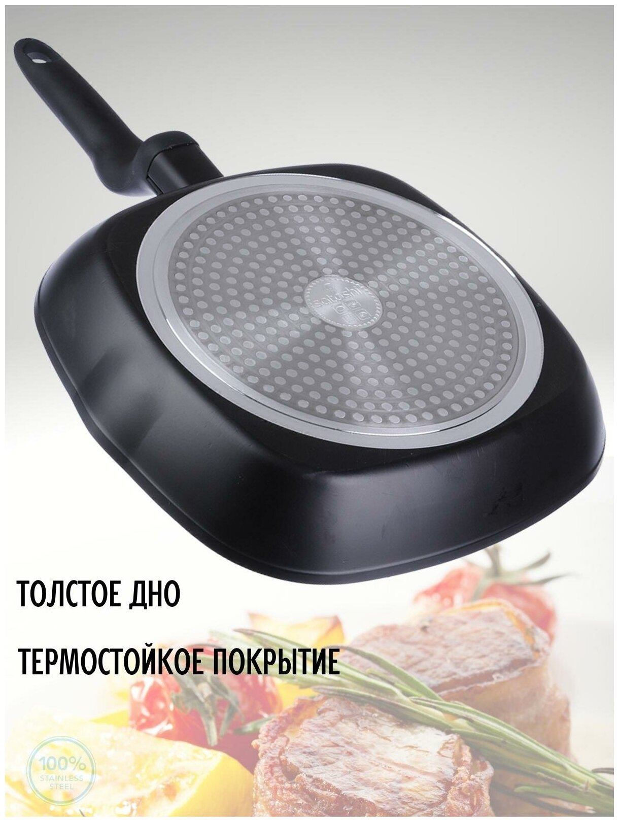 Satoshi Сковорода-гриль литой алюминий 24х24 см антипригарное каменное покрытие, индукция