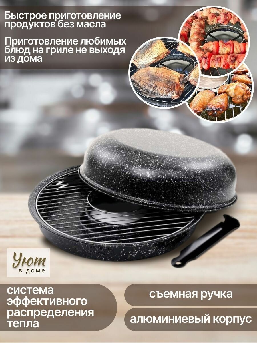 | Комплектация | сковорода, решетка-гриль, крышка со съёмной ручкой, инструкция с рецептами |