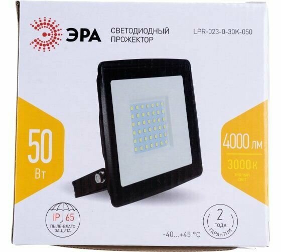 ЭРА Б0052859 Прожектор светодиодный уличный ЭРА LPR-023-0-30K-050 50Вт 3000K 4000Лм IP65 .