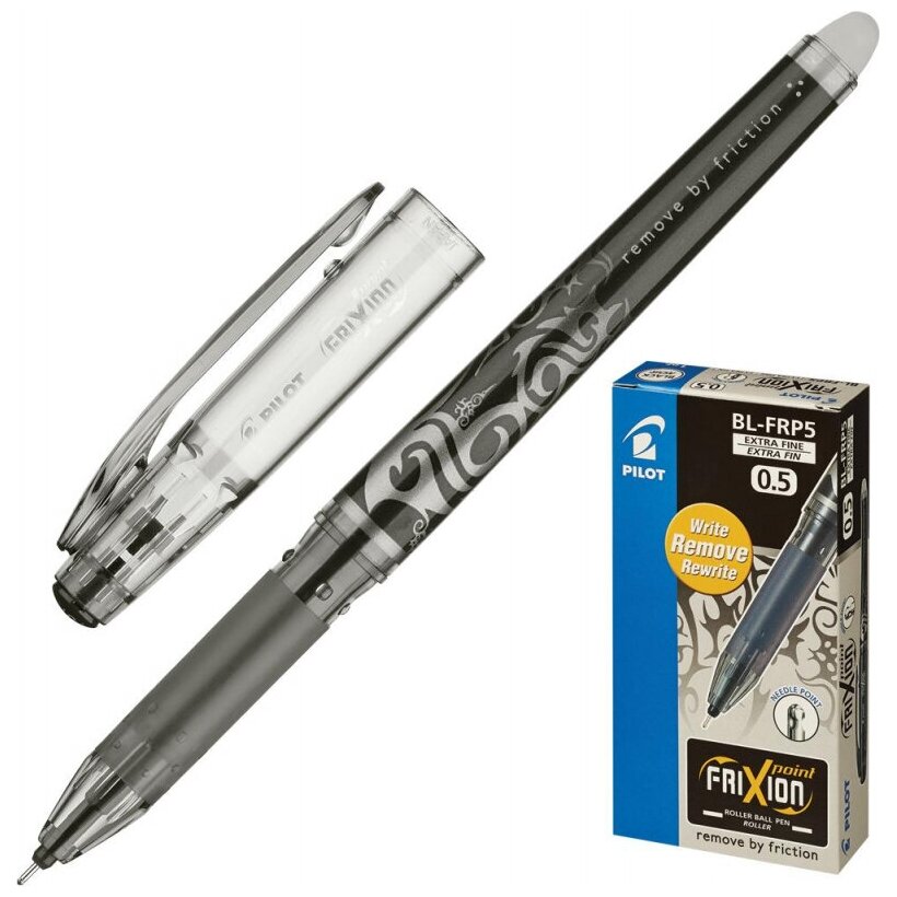 Ручка стираемая гелевая Pilot Frixion Point, игольчатый узел 0,5 мм, линия 0,25 мм, черная (BL-FRP-5)