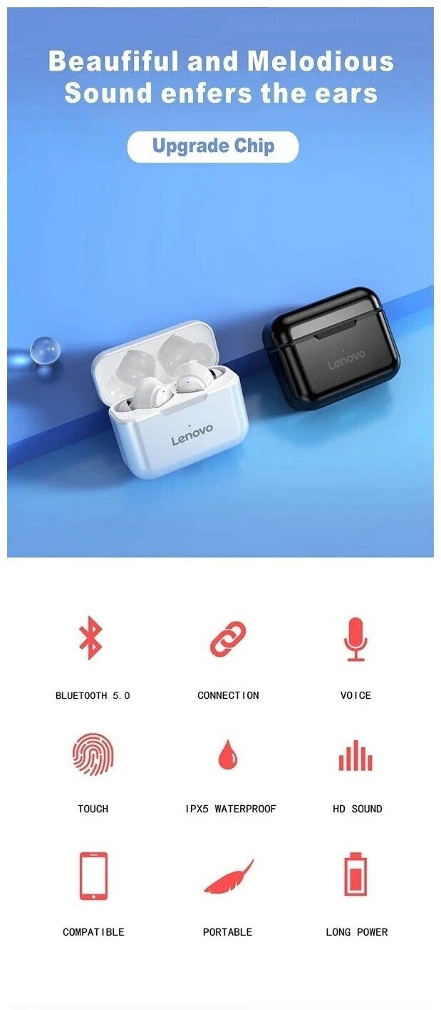 Беспроводные наушники Lenovo QT82, белый интересное: